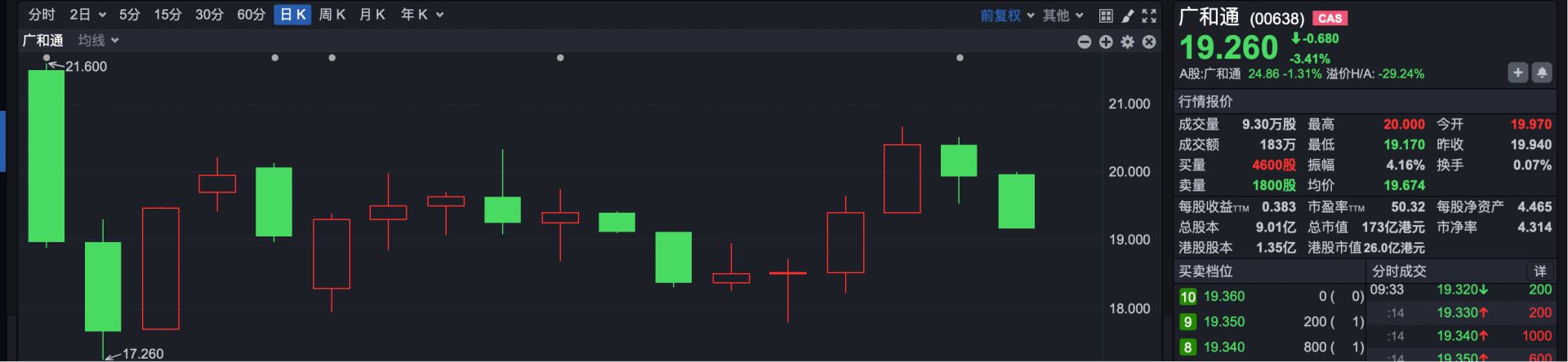 消息面,深交所公告,因广和通(00638.HK)在香港市场价格稳定期结束且相应A股上市满10个交易日,根据《深圳证券交易所深港通业务实施办法》的有关规定,港股通标的证券名单发生调整并自2025年11月17日起生效,调入广和通。今日早盘,广和通跌超3%。