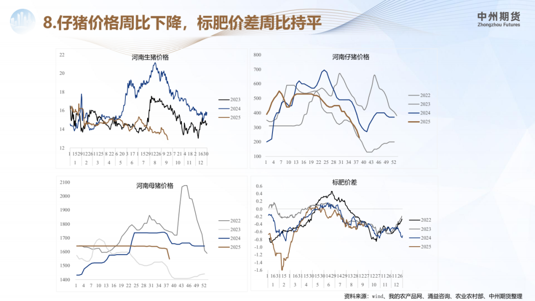 价格方面:参考钢联数据,9月19日河南生猪价格维持在12.88元/公斤,环比(-0.7)元/公斤。
