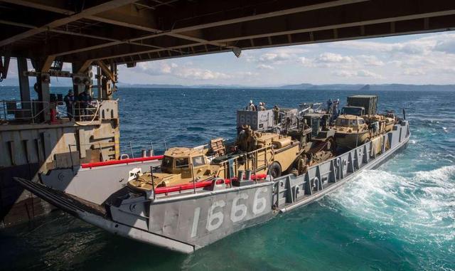 舰艏设计了一个巨大的“蚌式”舱门,就像河蚌开壳一样,能直接在沙滩上张开大嘴。车辆、人员、集装箱化的装备,可以直接从“嘴里”开上开下,无需借助任何码头设施。舰艉还设有装卸坡道,提供了另一个进出通道,提升了装卸效率和灵活性。这种设计,完美契合了美国海军陆战队司令埃里克·史密斯上将所强调的需求:在“缺乏港口的敌方交战区”保持作战机动性。