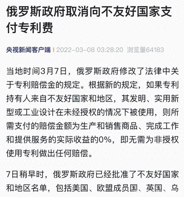 六、、制裁是把双刃剑,俄罗斯的“破局”给我们的启示 这场制裁与反制裁的博弈,其实给我们带来了很多启示。 西方以为靠知识产权、专利和品牌优势就能拿捏俄罗斯,结果却忽略了市场的力量和自主发展的重要性。 制裁本质上是把双刃剑,伤别人的同时,也可能伤到自己。 对俄罗斯来说,西方的制裁虽然带来了短期的不便,但也倒逼其加快了本土产业的发展,摆脱了对西方的依赖。 通过放弃西方的知识产权保护、推动平行进口、扶持本土企业,俄罗斯成功构建了自己的“平行经济”,不仅保障了民众的生活需求,还实现了经济的稳定增长。 现在俄罗斯甚至开始抵触西方品牌回归,因为本土企业已经成长起来,不再需要西方品牌的加持了。 对我们来说,这也提醒我们,必须坚持自主创新,加快国产替代的步伐。 在全球化的今天,没有永远的盟友,只有永远的利益。 如果过度依赖西方的技术和品牌,一旦遇到制裁或封锁,就可能陷入被动。 只有拥有自己的核心技术和完整的产业链,才能在国际博弈中站稳脚跟,不受制于人。 同时,也要看到新兴市场的潜力,像中国商品在俄罗斯的崛起一样,主动抓住市场机遇,拓展海外发展空间。